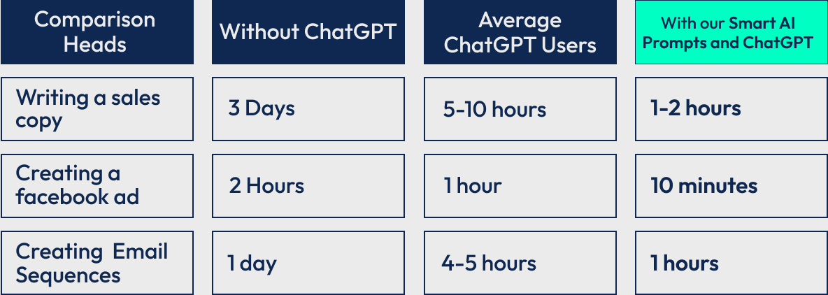 But fear not, dear friend. With our SMART AI prompts, you'll be able to unlock a whole new world of ChatGPT goodness that you never knew existed. While your competitors are busy typing away, you'll be sitting pretty, basking in the glow of our expertly crafted responses.