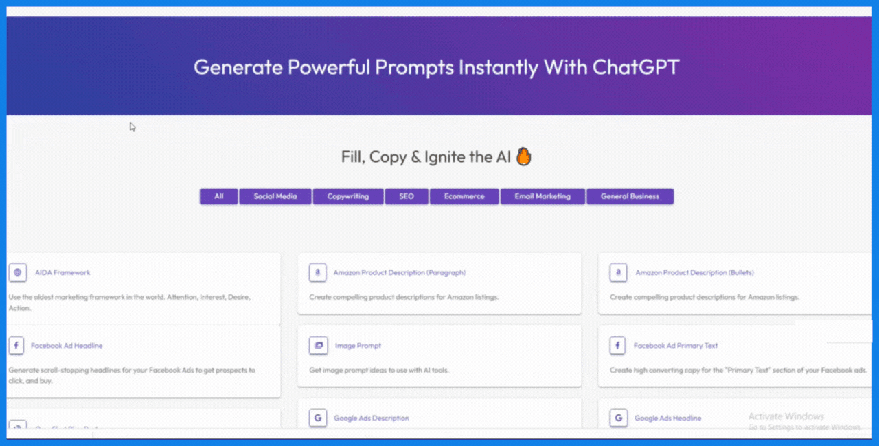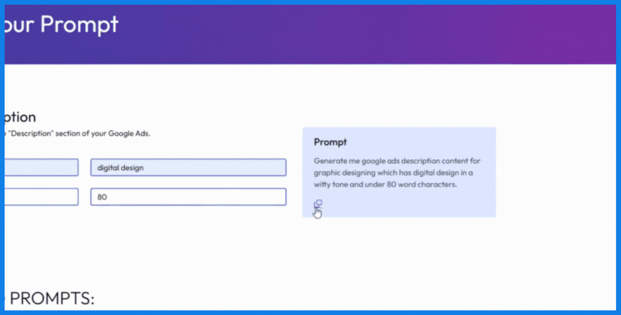 Step 1 - Simply copy the Prompt you want to Use to get the desired Marketing Output (Like Writing Email, writing Ad, writing video script)